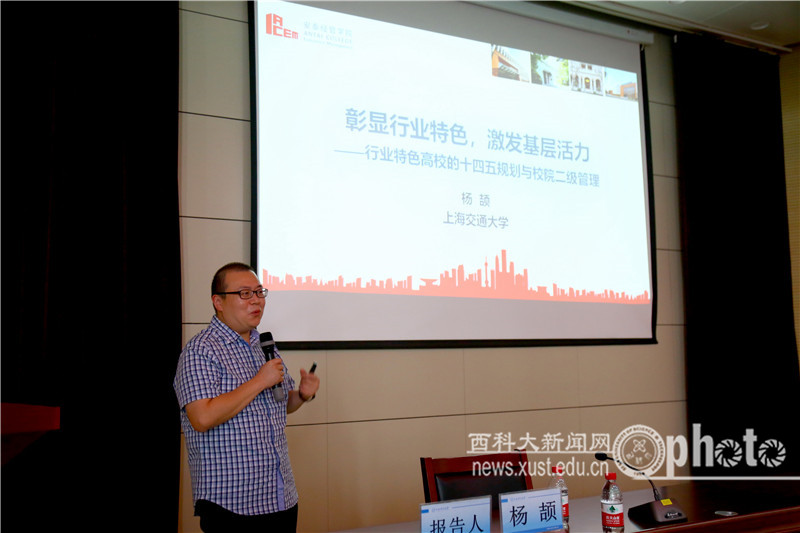 8月27日,学校在雁塔校区举办“十四五”规划编制专题报告会,邀请上海交通大学安泰经济与管理学院党委书记杨颉教授做题为“彰显行业特色,激发基层活力——行业特色高校‘十四五’规划与校院二级管理”的规划编制工作专题报告。副校长李树刚主持会议。学校发展规划委员会成员、未来发展战略研究小组成员、各级规划和保障措施编制工作小组负责人和主要执笔人参加了报告会。
